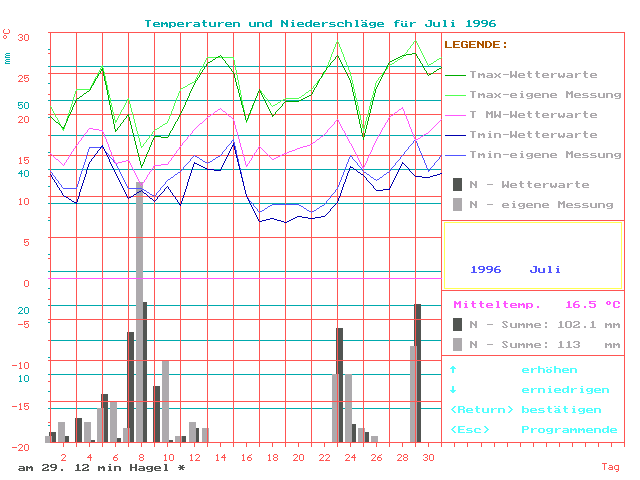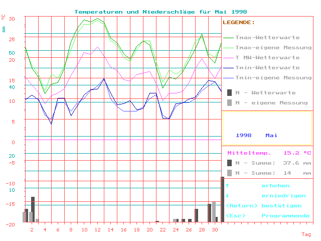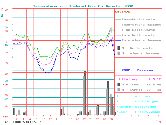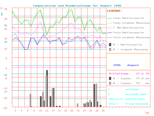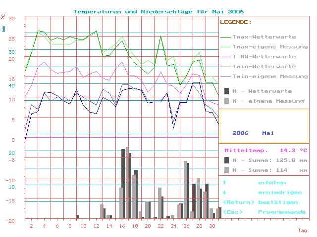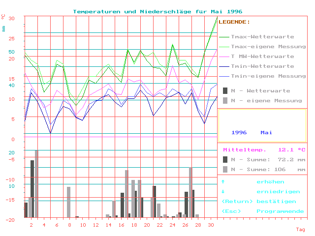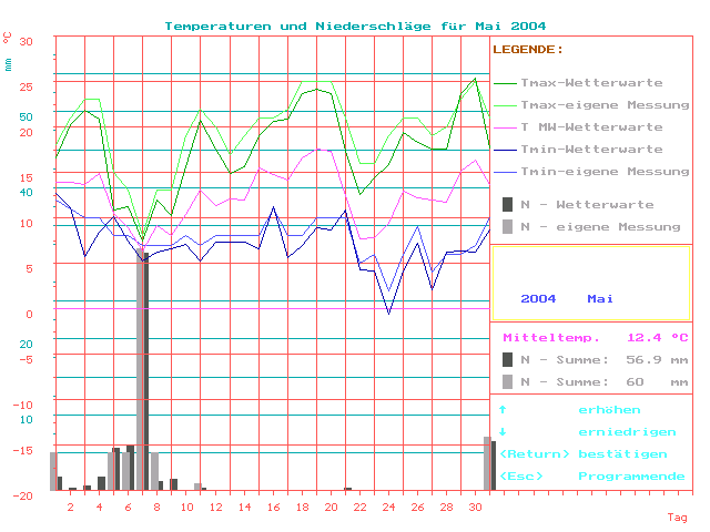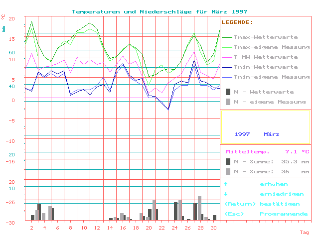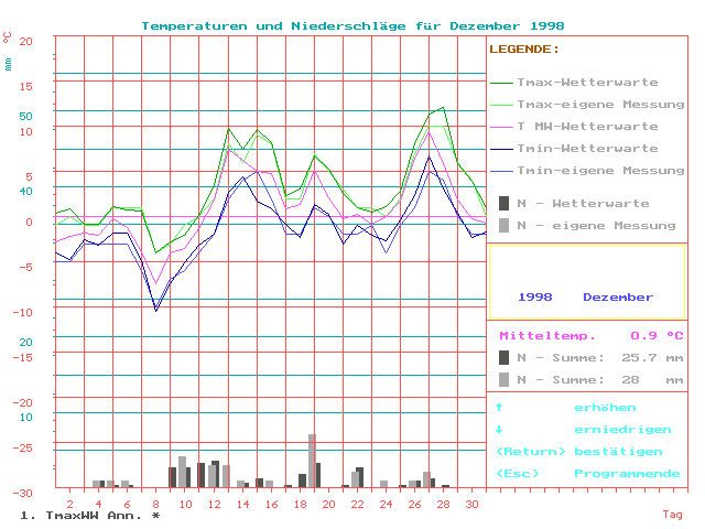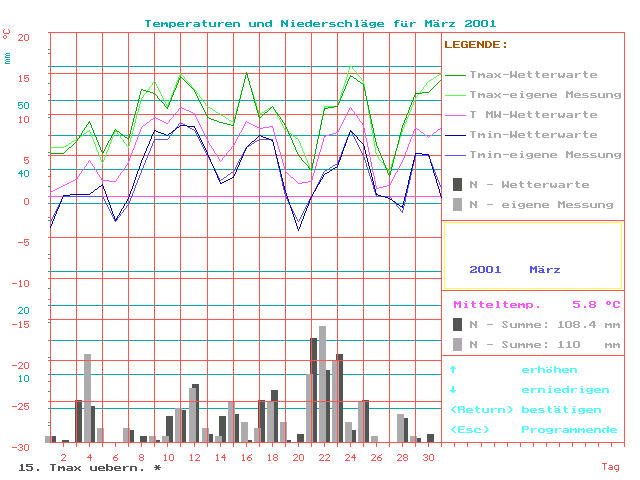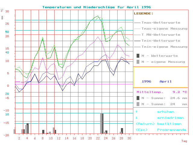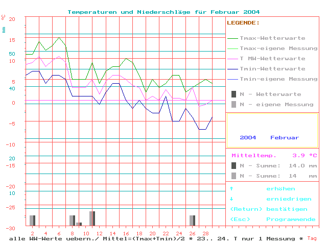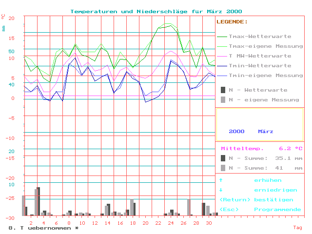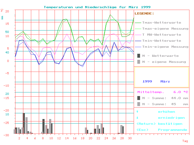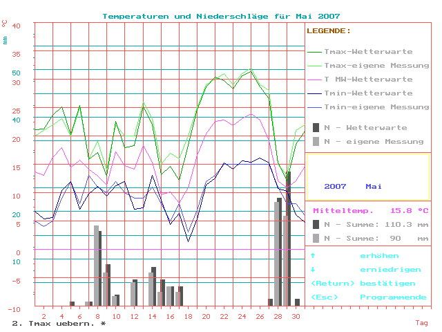 Tmax, Tmin, T MW Maximal-, Minimal- und Mitteltemperatur