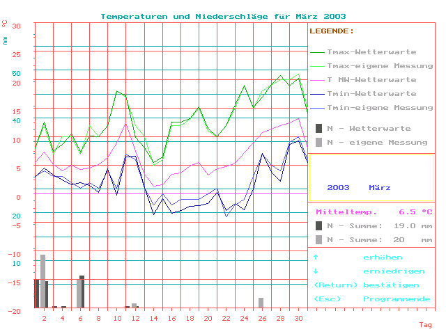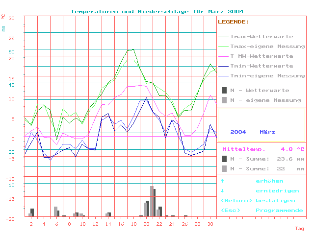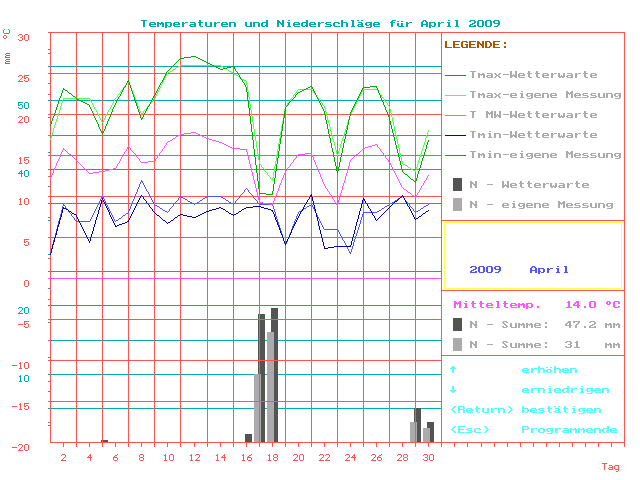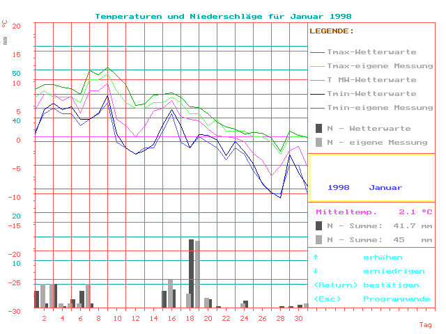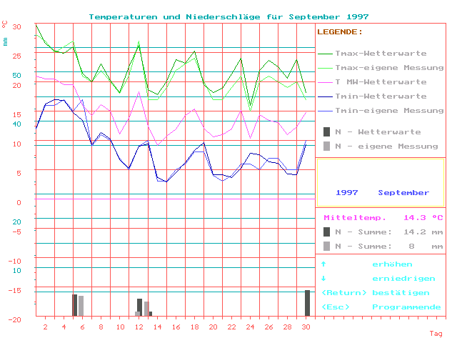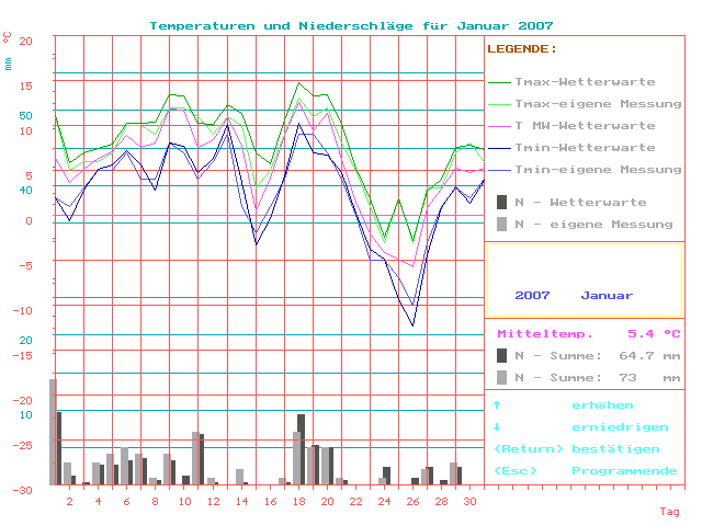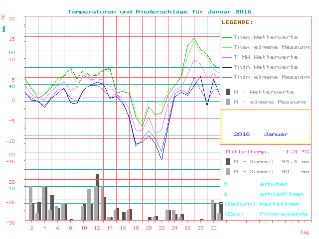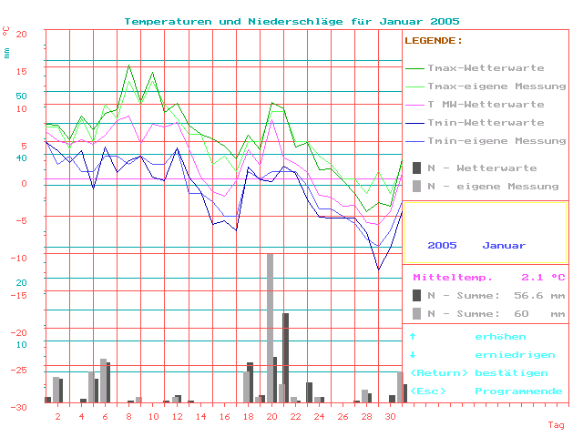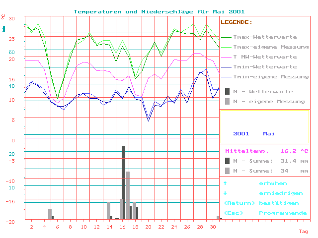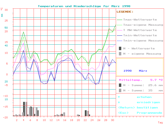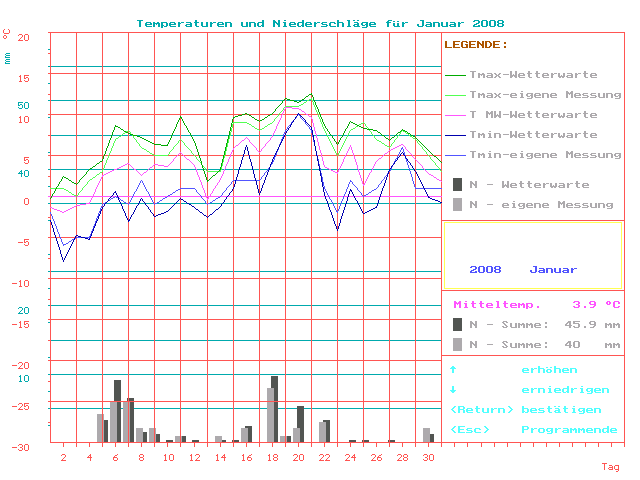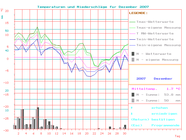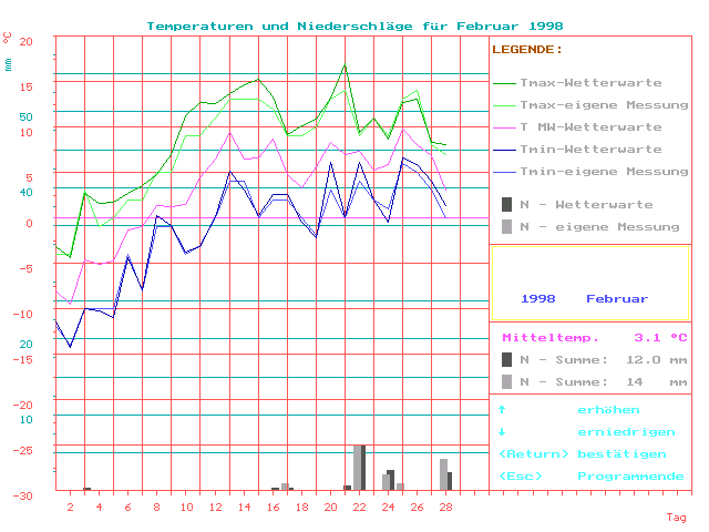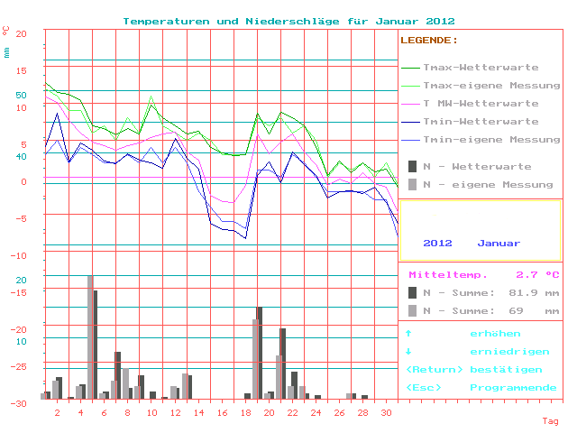 Tmax, Tmin, T MW Maximal-, Minimal- und Mitteltemperatur