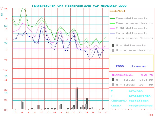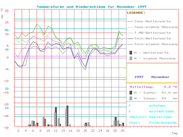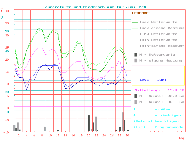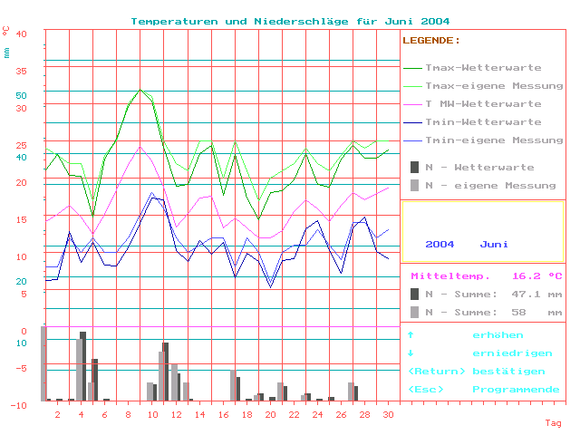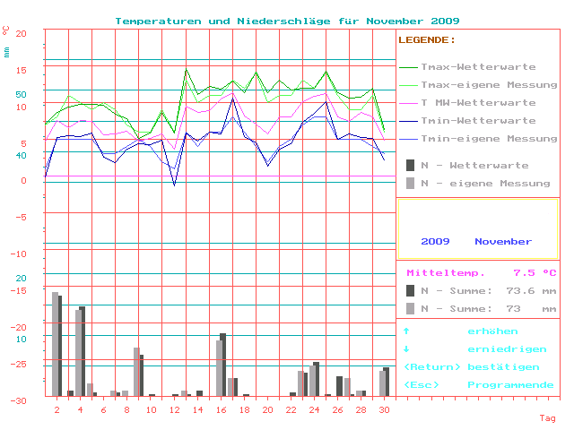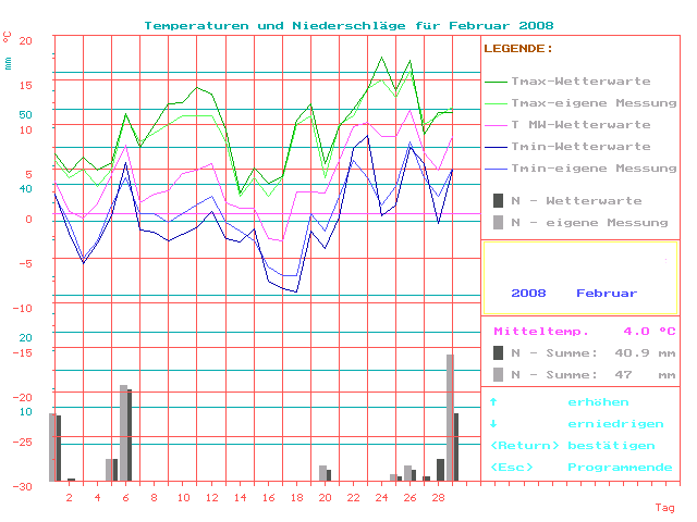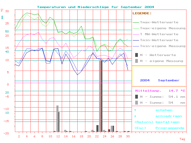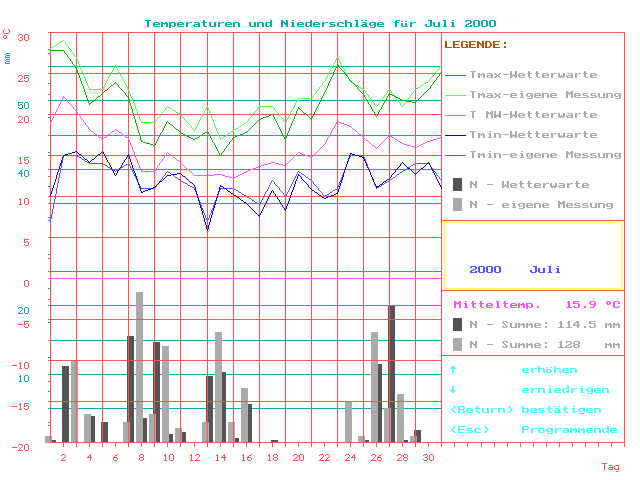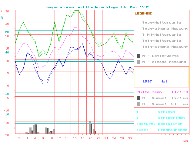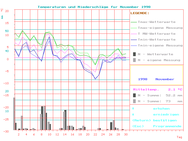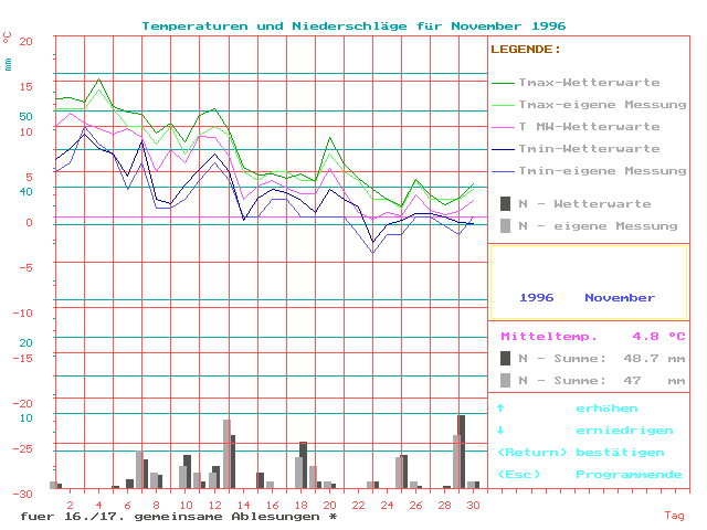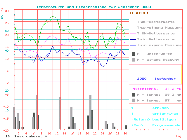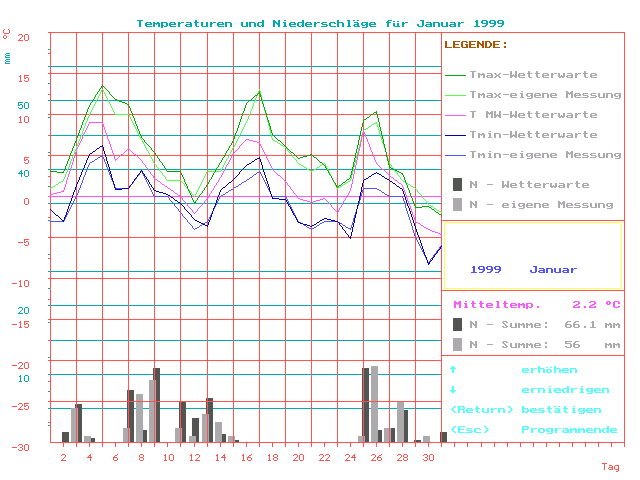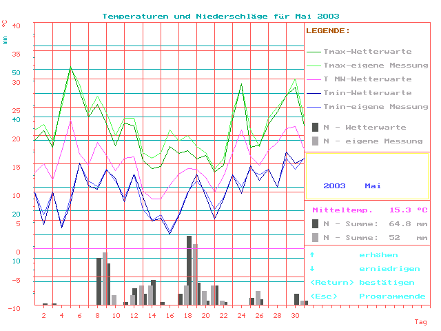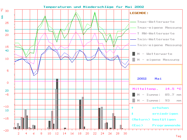 Tmax, Tmin, T MW Maximal-, Minimal- und Mitteltemperatur