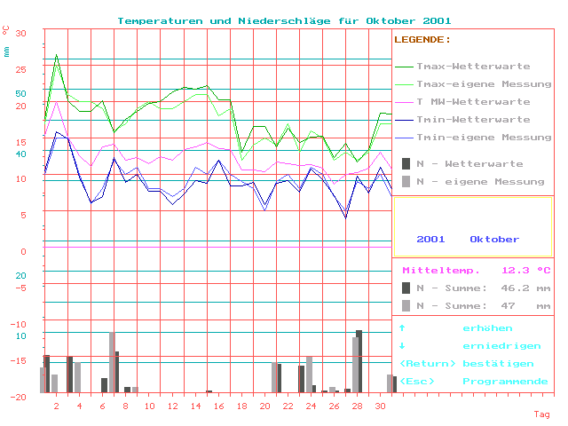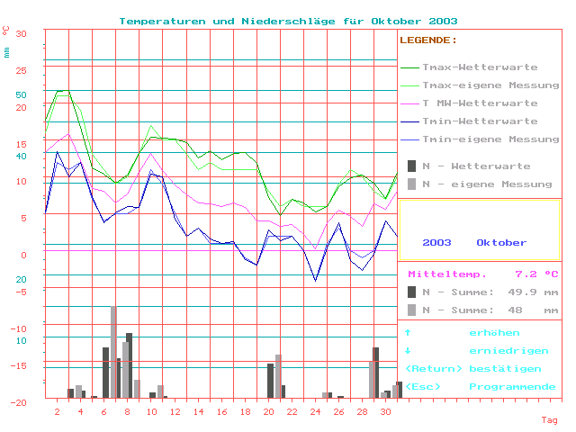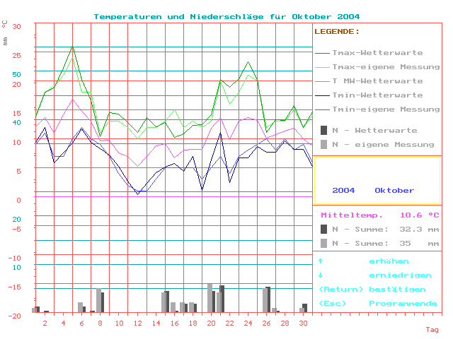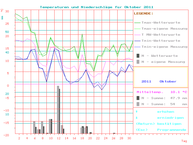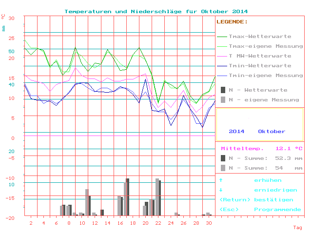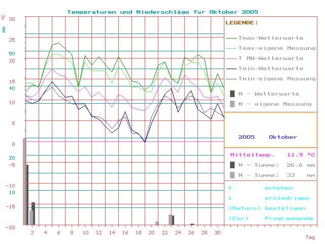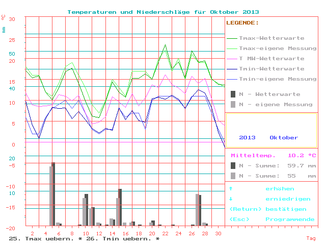 Als Beispiel und zur Erläuterung der Messwerte die Monatsgrafik vom Oktober 2013: