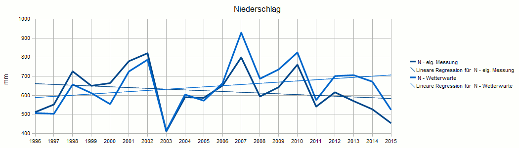 Jahresniederschlag aus professioneller (PWSD) und eigener Messung
